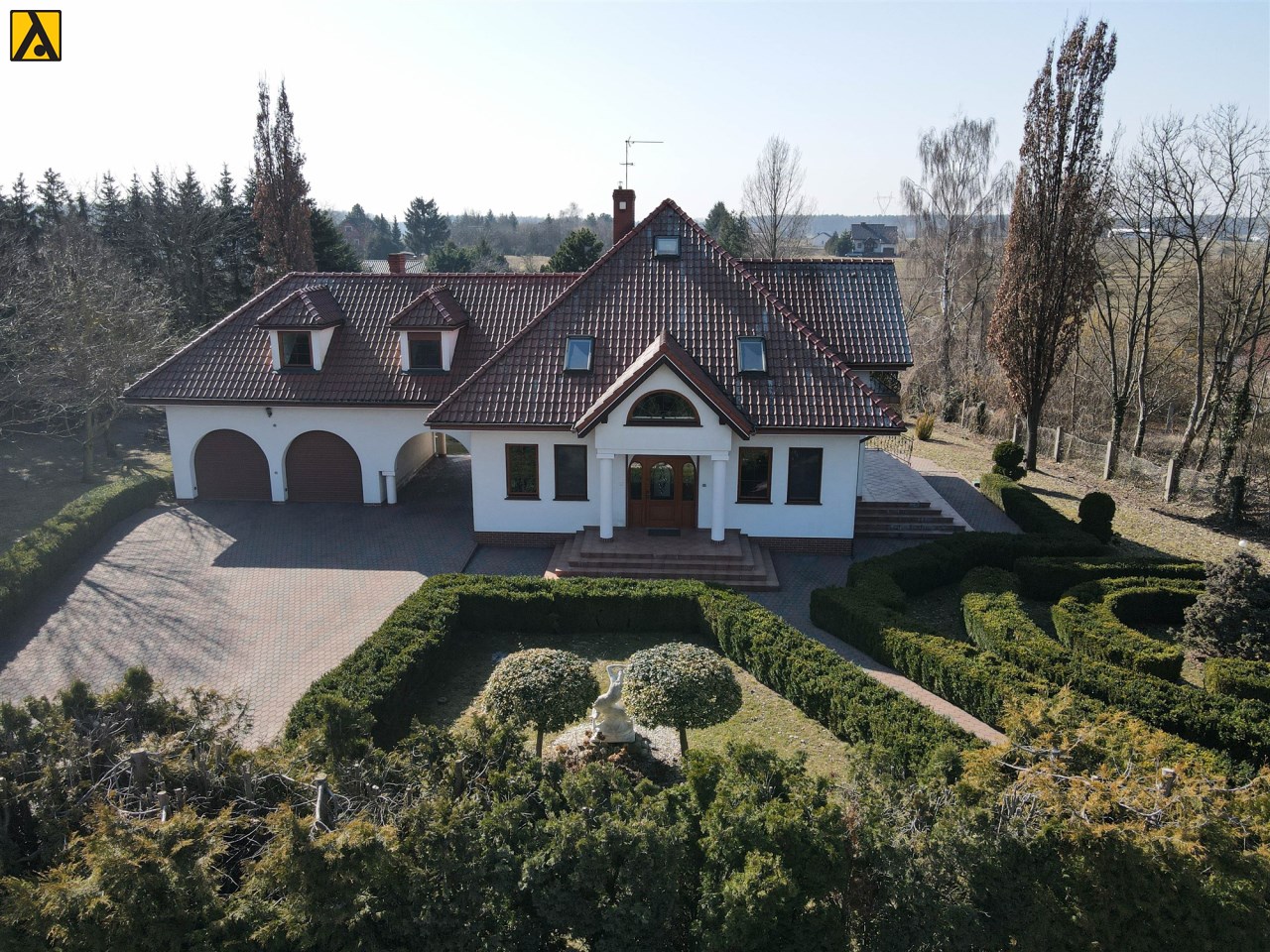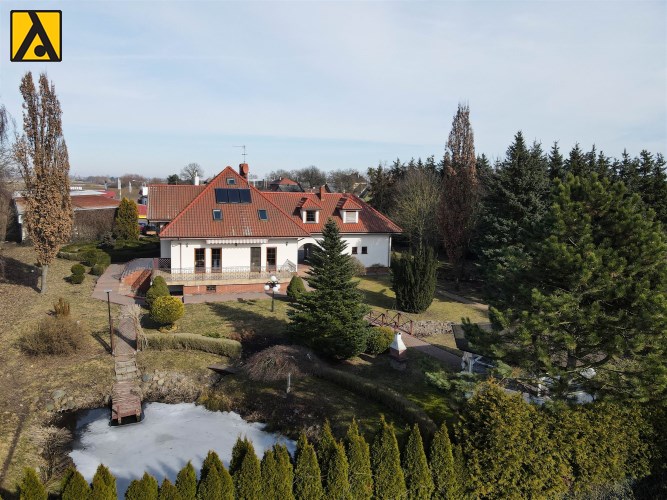 • Media: woda gminna, kanalizacja, ogrzewanie na olej opałowy i częściowo miał, fotowoltaika 20 kWp,