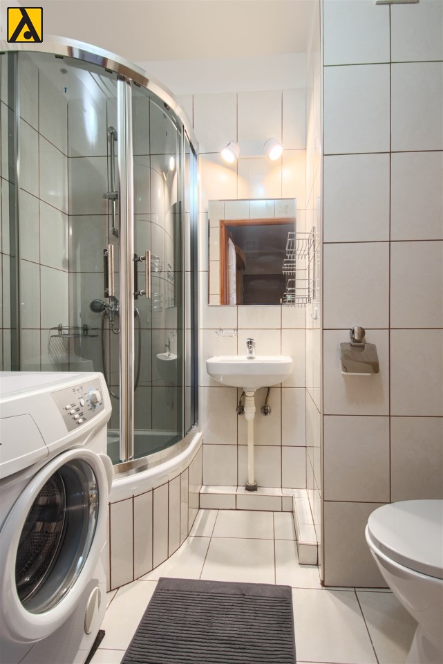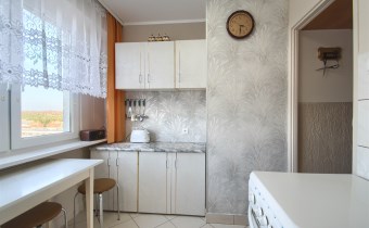 Mieszkanie zostało odświeżone, zostały wymienione drzwi wejściowe na nowe, antywłamaniowe. W łazience znajduje się kabina prysznicowa i pralka, w kuchni zestaw mebli z kuchenką gazową.
