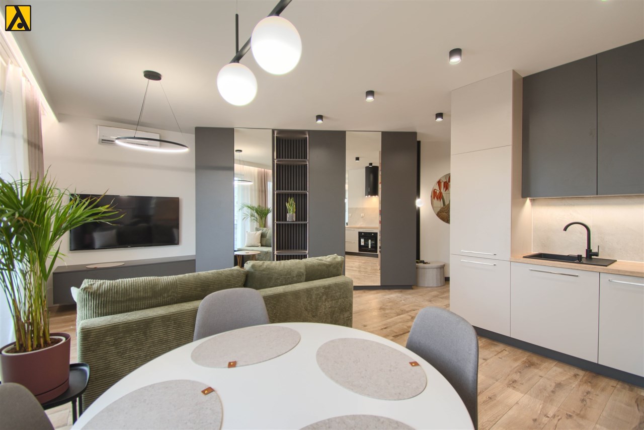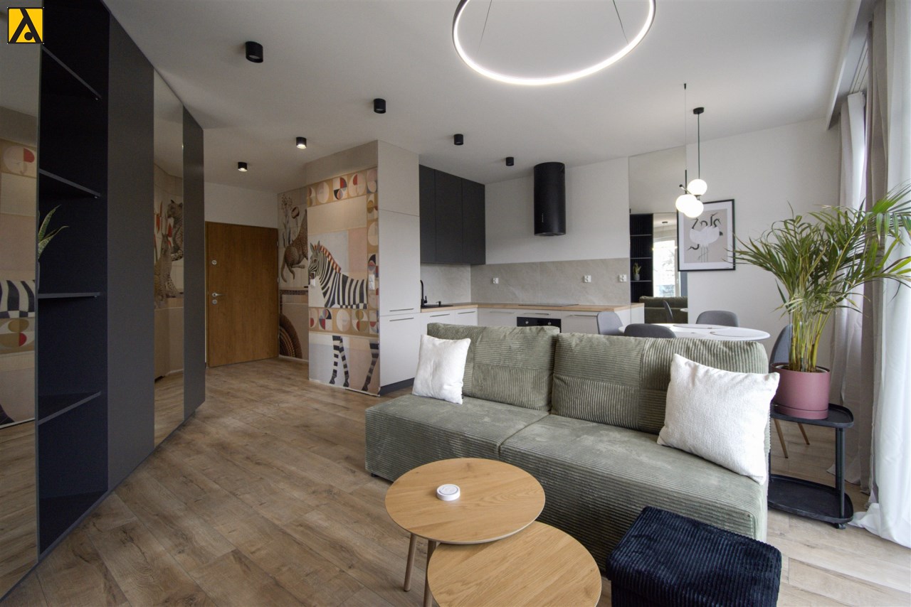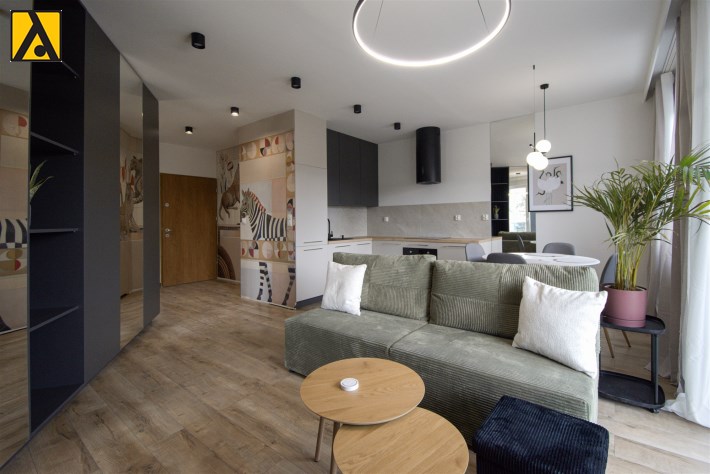Starannie zaprojektowane wnętrze łączy funkcjonalność z eleganckim designem. To miejsce, które wyróżnia się charakterem i dbałością o detale – gotowe, by od razu poczuć się jak u siebie.