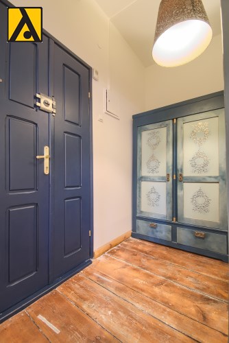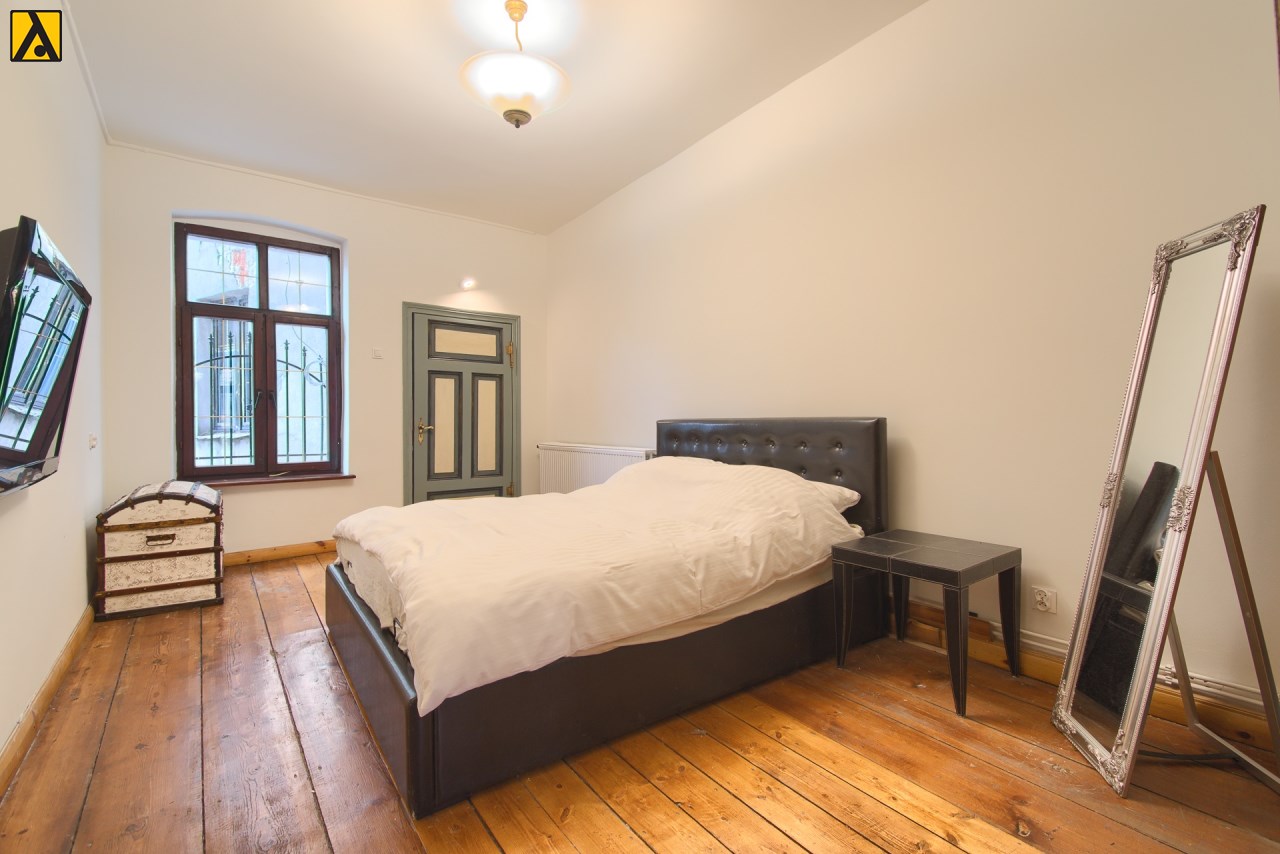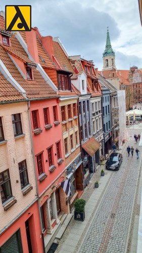Mieszkanie składa się z dwóch pokoi, kuchni, łazienki oraz przedpokoju. Położone jest na 3 piętrze w zabytkowej, uroczej kamienicy zlokalizowanej przy ul. Szewskiej w Toruniu.