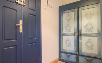 Mieszkanie posiada dwa wyjścia, jedno na główną klatkę schodową z wyjściem na ul. Szewską, drugie na klatkę pomocniczą, która prowadzi z kuchni na podwórko kamienicy.