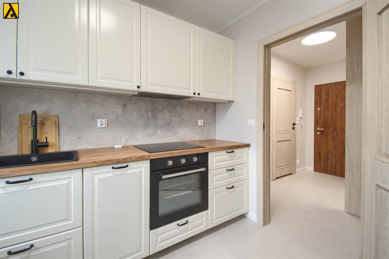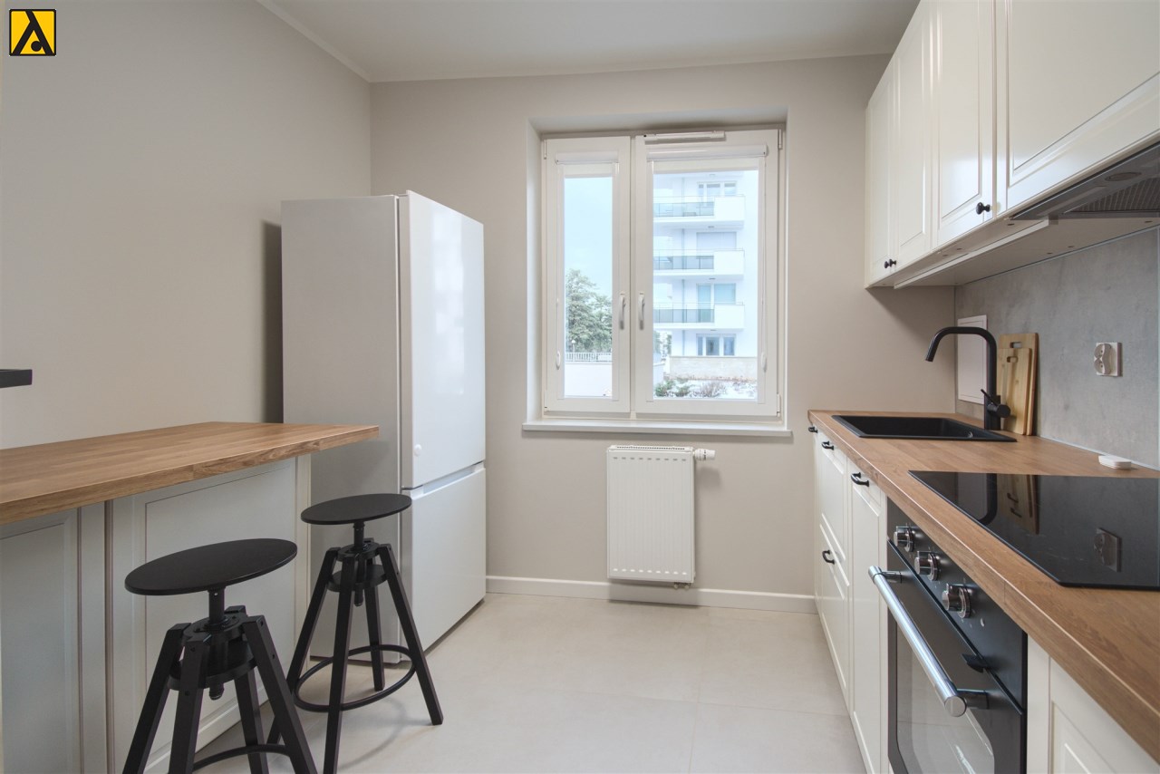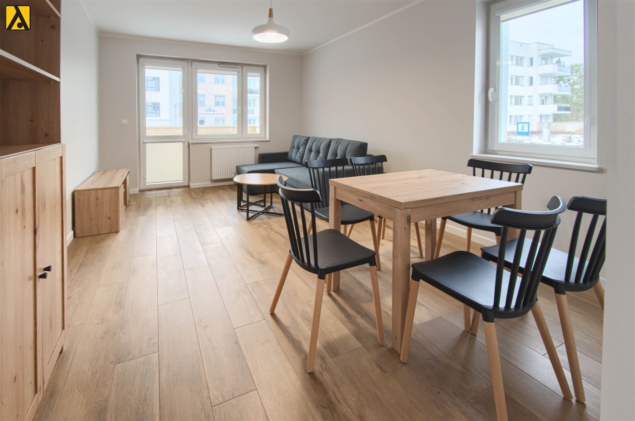 Oferujemy na wynajem nowe, umeblowane, dwupokojowe mieszkanie o powierzchni 48 m2, na parterze w budynku wielorodzinnym z cegły. Mieszkanie składa się z pokoju dziennego z dużym tarasem, sypialni, oddzielnej kuchni, łazienki i przedpokoju, jest wyposażone w niezbędne meble i sprzęty. W cenie, do dyspozycji Najemcy jest również komórka lokatorska i miejsce parkingowe w garażu podziemnym. Budynek usytuowany jest w pobliżu lasu. Polecam