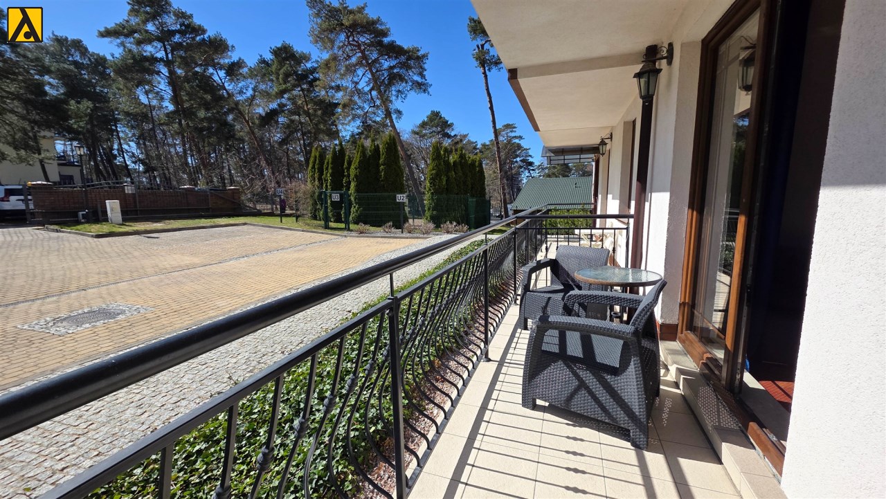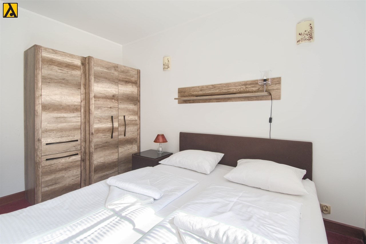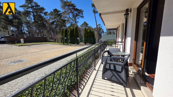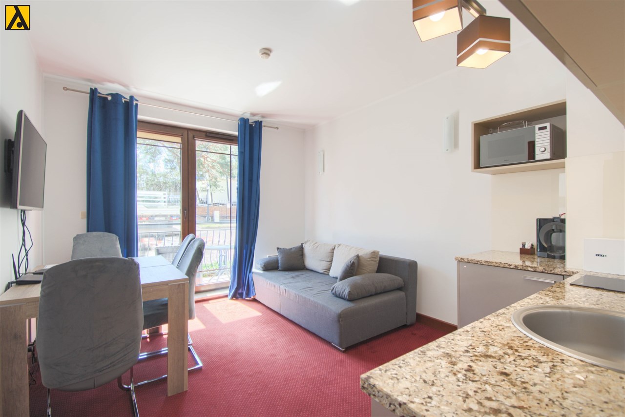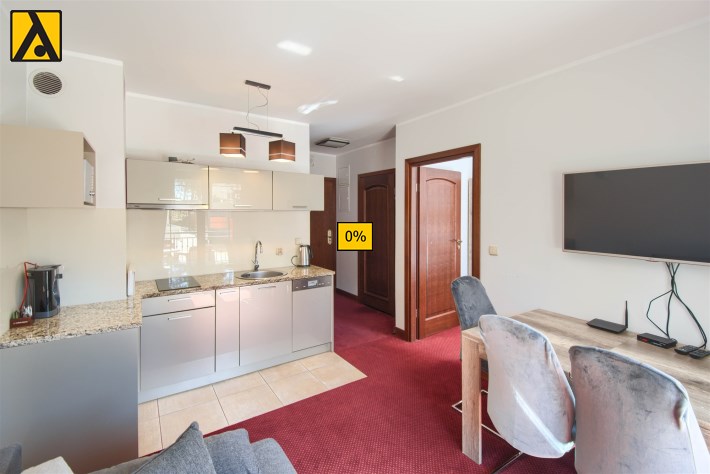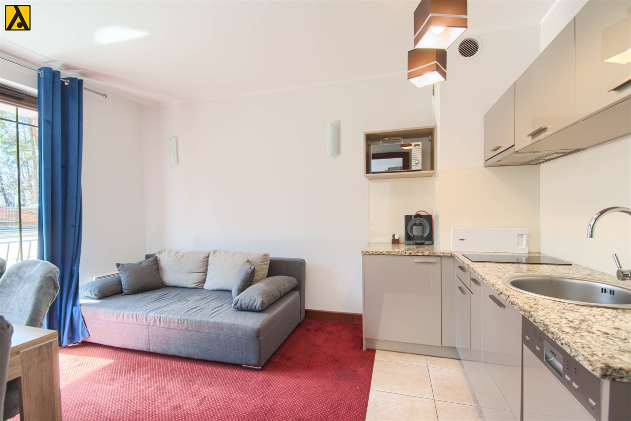 wyjście na duży balkon/taras. W łazience kabina prysznicowa, pralka. W sypialni znajduje się duża szafa, duże łóżko z materacem. W przedpokoju duża zabudowana szafa. Lokal wyposażony w naczynia, pościel i ręczniki, żelazko, czajnik elektryczny. Do tej pory wynajmowany w systemie najmu krótkoterminowego prowadzonego przez firmę Sun&Snow, całkowicie wyposażony i gotowy do dalszego najmu lub dla osób prywatnych.