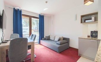 - salonu z aneksem kuchennym z wyjściem na duży balkon